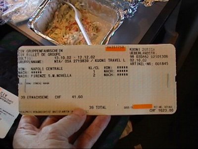 ミラノからフレンツエまでの乗車券