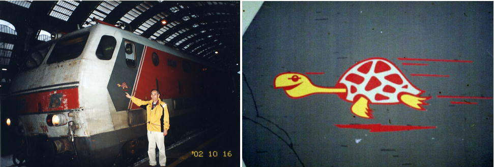 イタリヤに来て捜し求めたユーモラスな「カメ」のイラストの電機をミラノで発見