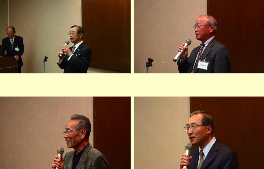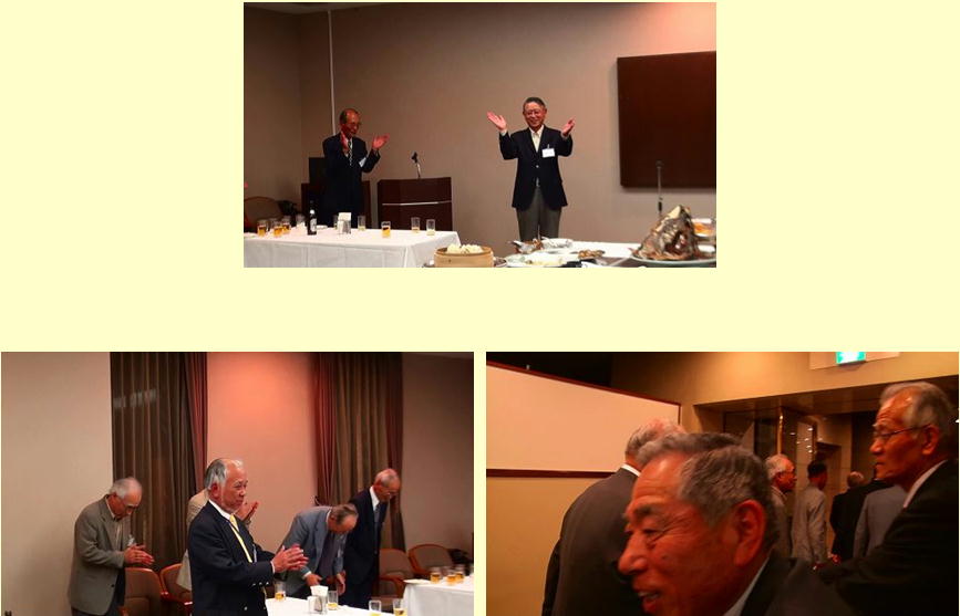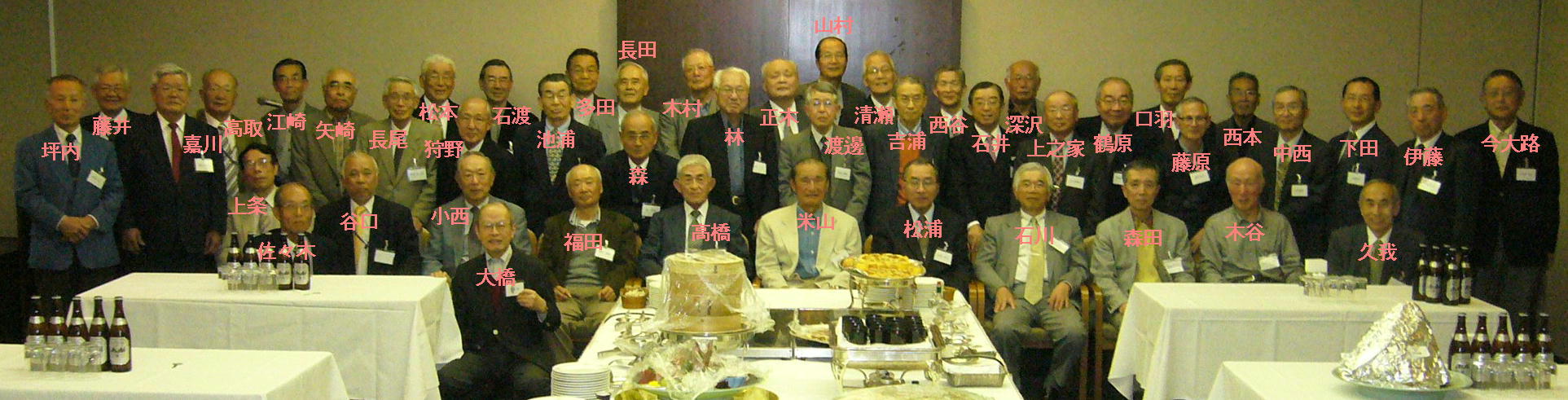 | 住友電工37会 次第 2012-04-12 佐々木 1.開催の趣旨 ・2009/10 木曽駒での37会で、3年後に入社50周年を迎えるので、何かイベントを考えよう ・入社した4月に、思い出の大阪製作所を訪れる ・パーティーは、東京他遠隔地からも参加しやすいような時間設定するという結論のもとに、今回の企画となった。 2.黙祷 この50年の間に、13名の方が亡くなられた。在りし日の姿を偲び、黙祷 3.乾杯 上条栄治さん(本日の出席者の中で最長老) 4.歓談 5.50年前の住友電工 ・売上高 37/3月期 460億円 ・資本金 12月 135億円 ・トピックス 2月/イラックスチューブ製造開始 3月/東海道新幹線用PC枕木納入 4月/60kv級PEXケーブル製造開始、英ダンロップ社よりディスクブレーキの 技術導入、企業化に着手 5月/アラビア石油向け海底ケーブル敷設43km 7月 新住友ビル完成、本社移転、ゴム事業部発足 11月 デミング賞受賞 ・寧静寮寮祭 10月21日開催 同期生の出演者多数 6.スピーチ----50年を振り返って ・久しぶりの参加 大橋 明 狩野寿郎 ・遠隔地から 石井源太郎 上之家健次 西本満夫 ・途中退職 松浦虔士 ・海外の思い出 松本国男 ・システム開発の裏話 長尾多一郎 ・50年前の寮祭スター 口羽 勉 ・ジュニアーの代表 山村欣一 7.中締め 今大路昂平 |
