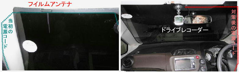 .ドライブレコーダーの電源コードをTVアンテナから隔離する。当初電源コードは助手席側のTVアンテナコードに並行して配線していたがそれを移設して運転席側に配線したら問題無く視聴可能となった