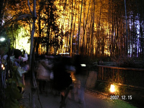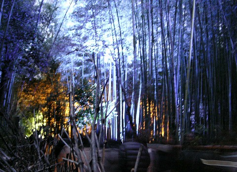 野宮神社から大河内山荘に至る散策路両側の竹林のライトアップは幻想的な情景でした。