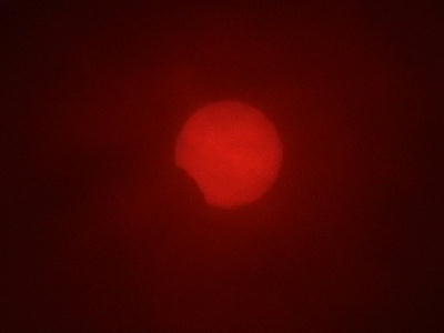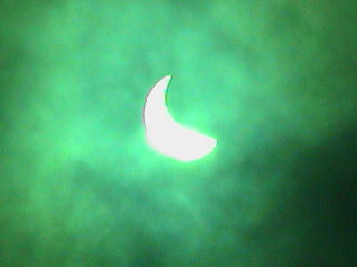 デジカメ用には溶接遮光ガラス(濃い黒緑・遮光度9)をレンズの上にあてて使用した。曇天には丁度よいが晴天では明る過ぎた。明るくなったり暗くなったりする天候ではコンパクトデジカメはマニュアル設定が面倒なので撮影 は難しい。経験者の話では遮光度13が適してるとのこと。