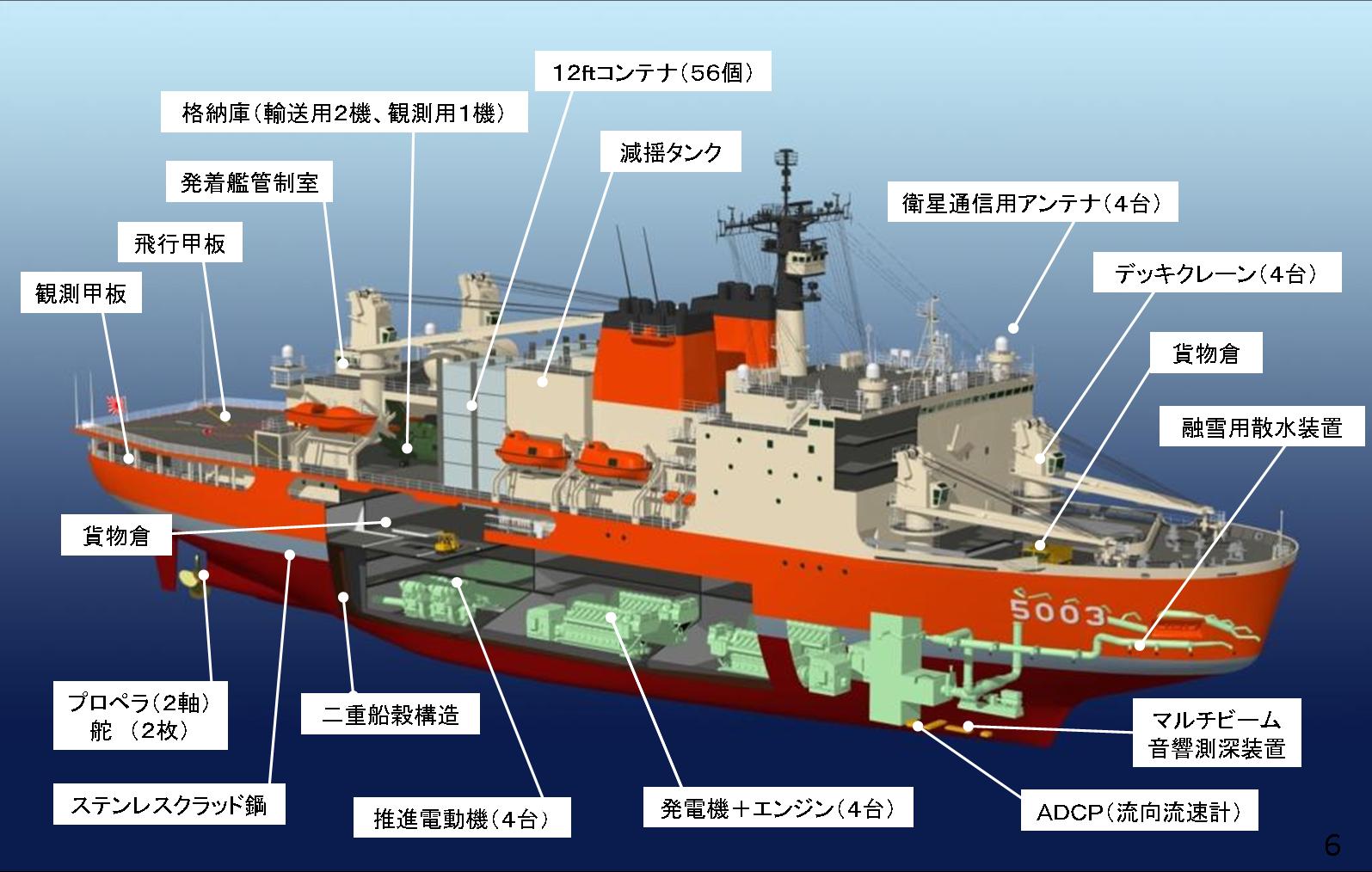 乗員179名 観測隊員 80名 搭載機CH-101 × 2機 AS355 × 1機 運用者: 海上自衛隊