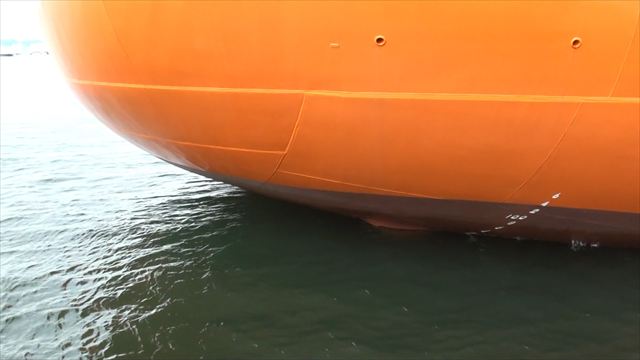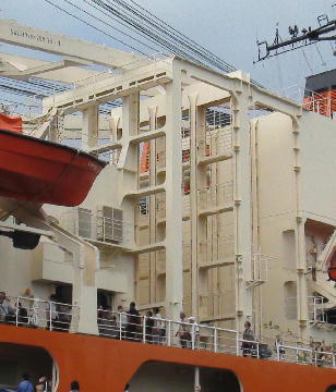 煙突(朱色)の真後ろは減揺タンクで左右の揺れを抑制します。