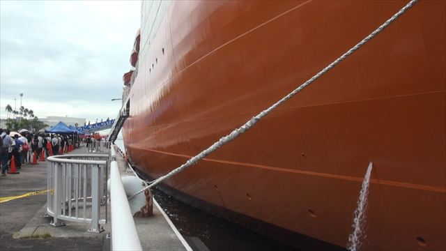 海水を汲み上げ、艦首に設けられた穴から散水する