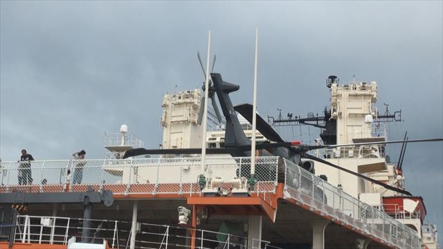 ヘリコプターが安全に船へ戻ってくるための「電波の灯台」。)