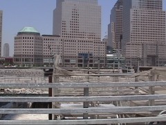 01/9/11同時多発テロで破壊されたWTCビル跡地は目下新ビルの建設中でフェンスには当時の記録や被災者の名簿が掲示さてれいました。