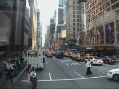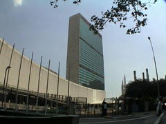 | 国連本部ですが旗が有りません非常に珍しい光景です、その理由はビルが老朽化して改修工事中だったからです。国連ビルは地上40階、地下3階、床面積は約22万5000平方メートル。大富豪のロックフェラー家から寄付された敷地(当時で約800万ドル)に6500万ドルの費用をかけ、1952年に完成した。第二次世界大戦後にマンハッタンで建設された最初の最先端ビルでしたが今は老朽化して水漏れもするそうです。国連ビルのそばにあるトランプ・タワーには松井秀喜の住んでいるマンションがあります。 |
