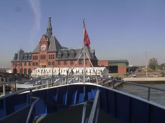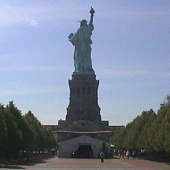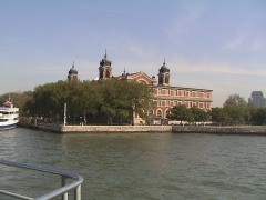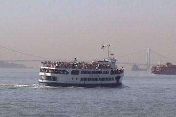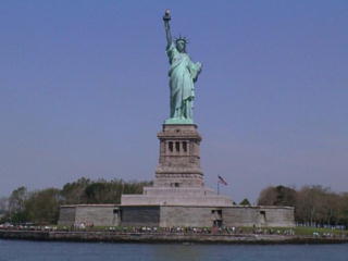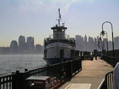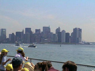 | 一般には「自由の女神」のあるリバティ島まではバッテリーパークから乗船しますがニューヨークの混雑を避けるためハドソン川対岸のニュージャージー州のフェリー乗り場から乗船しました、お陰でマンハッタンの朝の景色が堪能出来ました。フェリーのパイロットが下手くそで何度も着岸のやり直しをしましたが、その都度にぎやかなヤンキー娘が野次を飛ばしていました。ついでながらテロの警戒が厳しく乗船前には持ち物検査を受けねばなりません。 |
