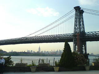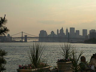 | ウィリアムズバーク橋を渡りすぐ橋元のイタリアレストランGIANDOにディナーに行きました。ついた時にはちょうど太陽が沈みかけていました。レストランの窓からはイーストリバーが間近に眺められ、オレンジ色の夕日に浮かび上がるマンハッタンの高層ビル郡のシルエットが見ながらイタリアンを楽しみました。 |