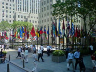 | GEビルを中心に19のビルやプラザが集まるコンプレックスの総称。ひと際は目をひくのは、5番街に面してやや奥まったところにある黄金に輝く像とはためく万国旗が並んでいる広場。ここは、冬になるとアイススケートリンクがつくられ、巨大なクリスマスツリーが飾られる。春にはイースターのフラワーディスプレイ、夏にはオープンエアのカフェなど、季節ごとに様変わりして、道行く人々を楽しませてくれる場所です。 |