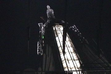 背後から見た像と 台座部分のアップ、そこにいる見学者の大きさを見比べると像が如何に大きいかが分かります。