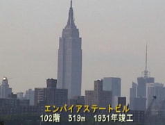 1931年完成、102階建て高さ381m、86階の吹きさらし展望台は地上から320mもあります、ここからの眺めは迫力があります。